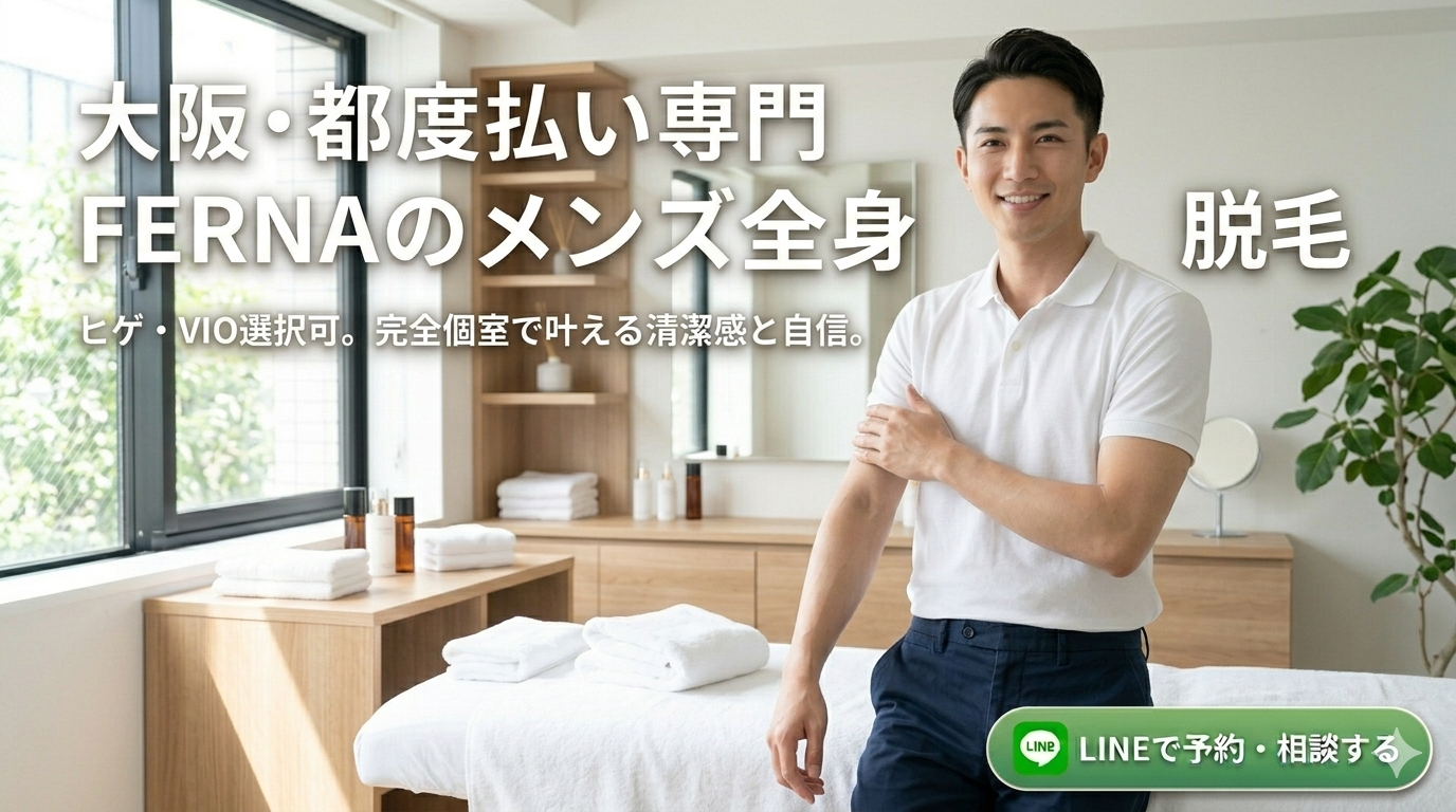 「サロンに通うところを見られたくない」「女性客とすれ違うのが気まずい」といった男性特有の不安を解消するため、FERNAはマンション型の完全個室空間を採用しています。